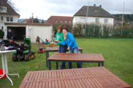 Mit viel Körpereinsatz haben 25 Mitglieder uns mit ihrer Arbeit super unterstützt. Sie haben wirklich alles gegeben, um bald die Anlage in vollen Zügen zu nutzen. Bei halbwegs angenehmen Temperaturen wurde Schotter verteilt, Unkraut entfernt, Bäume beschnitten, Bänke gesäubert und platziert, Tische geölt und der Versuch gestartet den Aufsitzrasenmäher zu reparieren. Gestärkt wurde sich mit Bratwürstchen vom Grill. Auch die Jugend hat alles gegeben. Vielen Dank auch an Jürgen Klein, der mit seiner Fußballtruppe im Vorfeld die riesig lange Hecke mit riesDie Galerie wurde nicht gefunden!igen Stacheln geschnitten hat. Jetzt steht der Saisoneröffnung am 23./24.04. nichts mehr im Wege. Ab dem, 20.04. sind die Plätze zum Spiel bereit. Unser Platzwart wird bis dahin die Restarbeiten auf den Plätzen beenden.Wir wünschen allen Mitgliedern eine super Sommersaison, spannende und erfolgreiche Medenspiele und ganz viele schöne Stunden auf unserer Anlage.